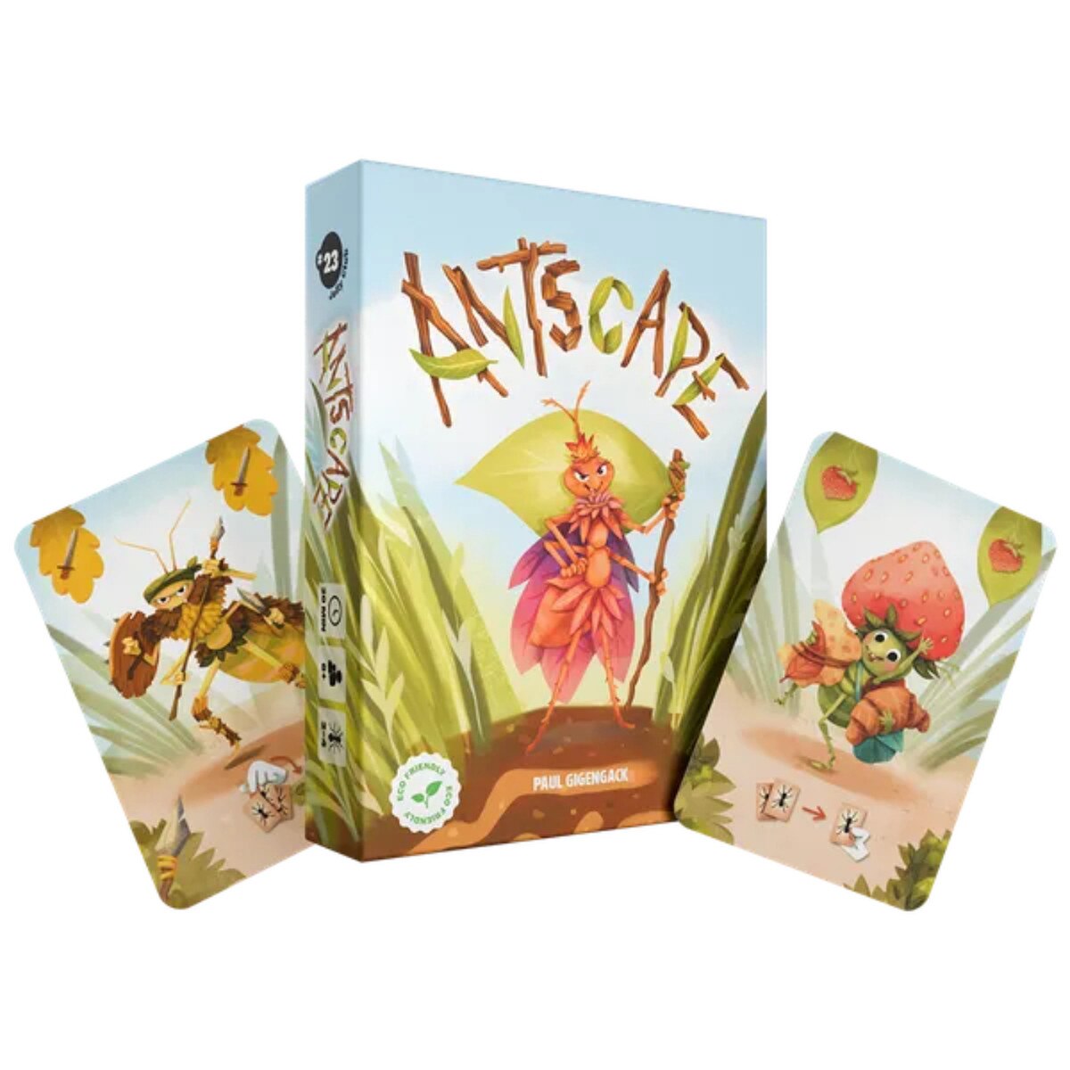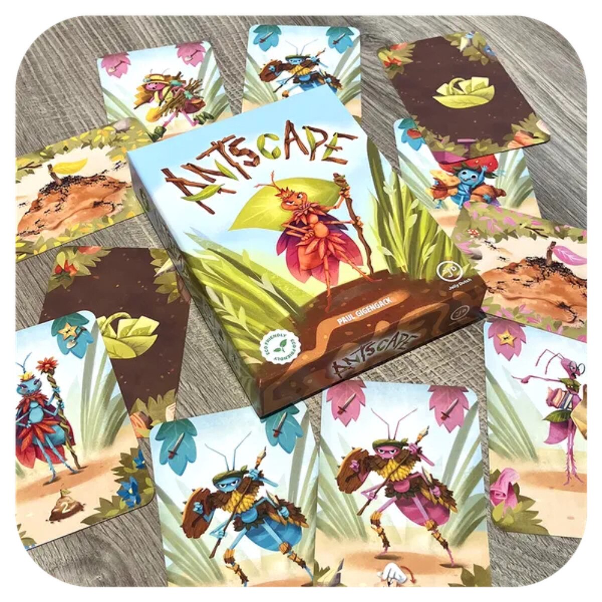 In Antscape, players represent competing ant colonies trying to expand their territory in a shared landscape. The goal is to claim as many valuable areas as possible, recruit new ants, and use the queen wisely to score points!