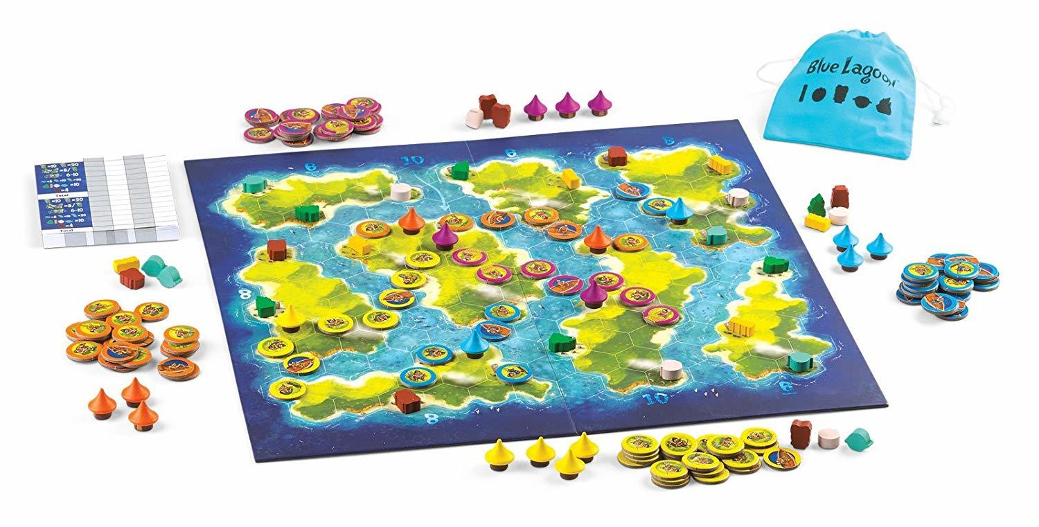 In Blue Lagoon, each player manages a group of settlers that spread out on the islands of this new archipelago to discover its wealth and build villages. In more detail, this is a set-collection game with an area-control mechanism. Each player manages a group of settlers that spread out on the islands of a newly-discovered archipelago, discovering its wealth and building villages as they explore. Points are awarded for collecting resources and colonizing the islands. Smart placement and anticipation are needed to win.