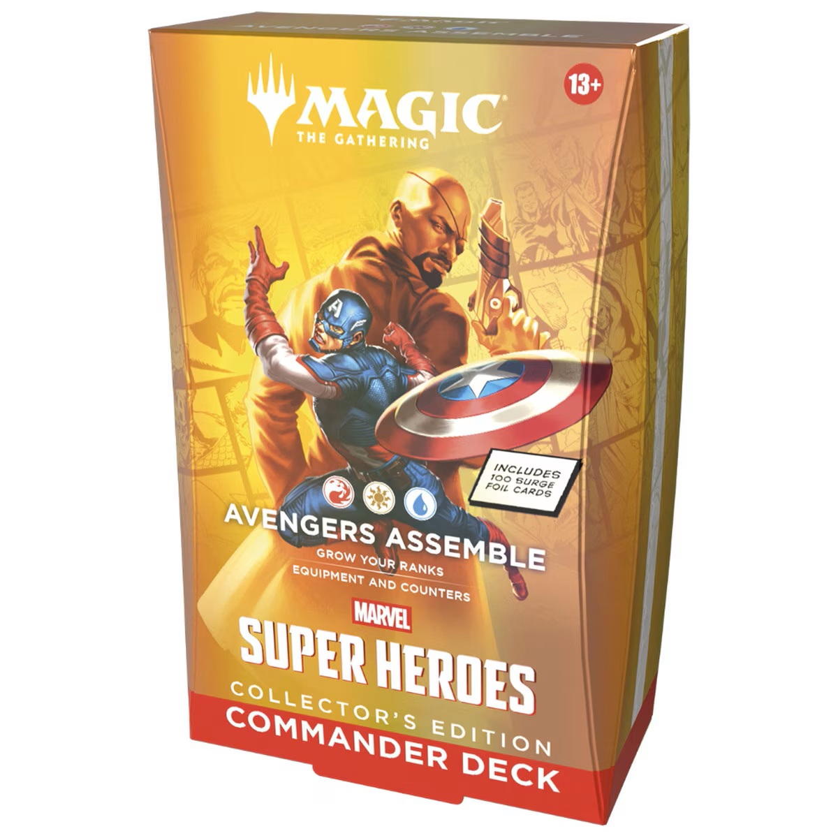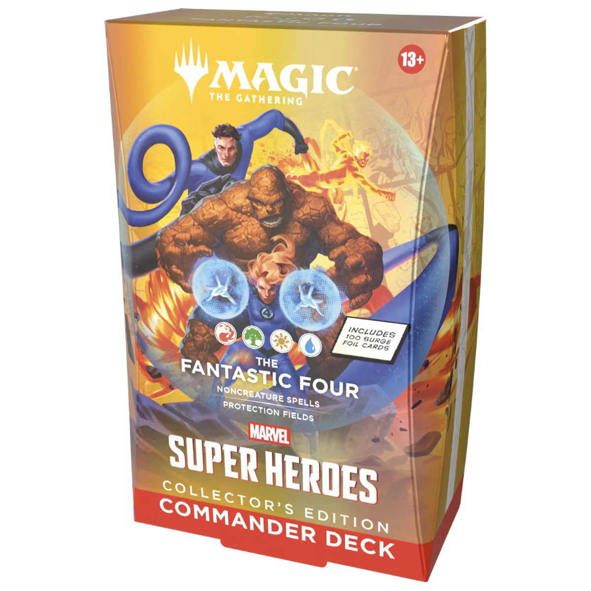 Commander decks are ready to play right out of the box and contain everything you need to play Magic’s most popular multiplayer format. Magic: The Gathering | Marvel Super Heroes Commander Decks Collector’s Edition feature four different Commander deck versions and each includes 100 surge foil cards. More about Magic: The Gathering | Marvel Super Heroes The Marvel Universe has arrived in full force! An all-star roster of heavy hitters jumps from the comics to the battlefield, and the fate of the world hangs in the balance. Build your dream super team of Heroes and Villains, then suit them up with iconic gear and unleash their earthshaking abilities. Soar, strike, and smash your way to victory in Magic: The Gathering | Marvel Super Heroes! © 2026 MARVEL | TM & © 2026 Wizards of the Coast LLC