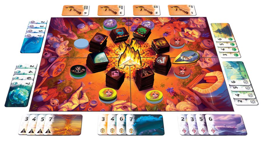 In the dreamlike board game Nomads, players each collect disjointed pieces of stories. As you gather the story tiles, you can exchange them for a song or legend that makes sense of the seemingly random fragments. In the end, the player with the most points gleaned from song and legend cards and opal moon tiles — and with the fewest leftover story or joker tiles — wins!