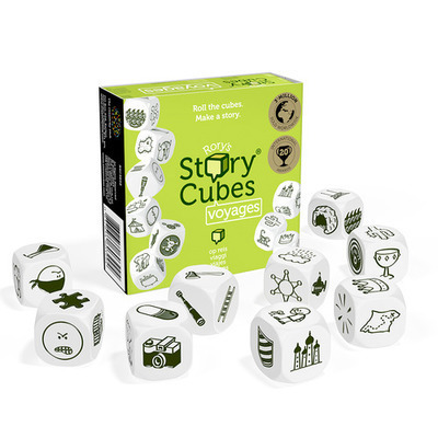 As with Rory’s Story Cubes, you can play Voyages as a game for one or more players, as a party game for three or more, or as an improv game in which each player contributes part of the story, picking up where the last one left off. Win award points for speedy delivery, inventiveness, imagination, drama and humor.