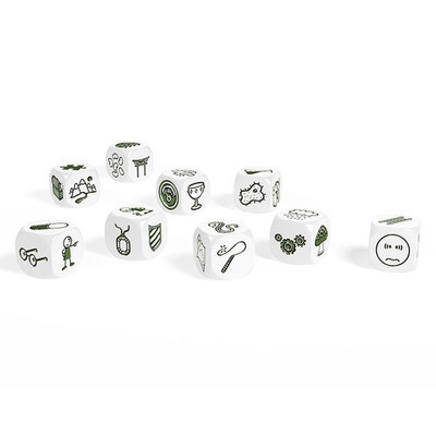 Rory’s Story Cubes: Voyages – a pocket-sized set of nine cubes depicting 54 icons to inspire epic adventure – is the second expansion set for Rory’s Story Cubes, while also being a standalone item. Made to the same high quality as the original set, the cubes are inked in dark green to allow for easy sorting if you choose to use more than one set during play.